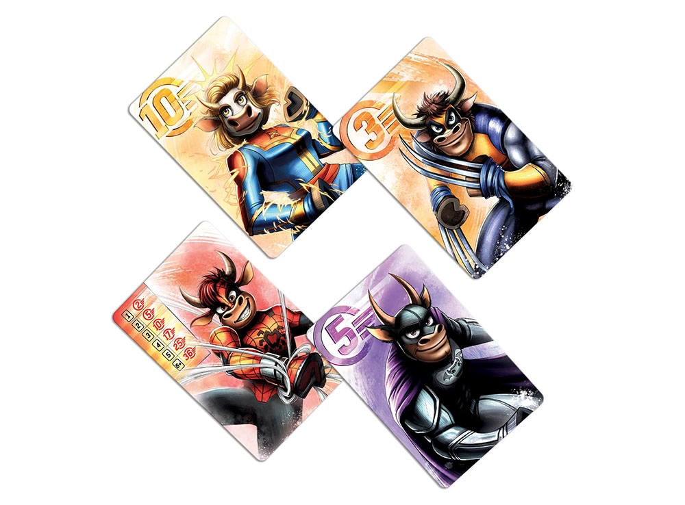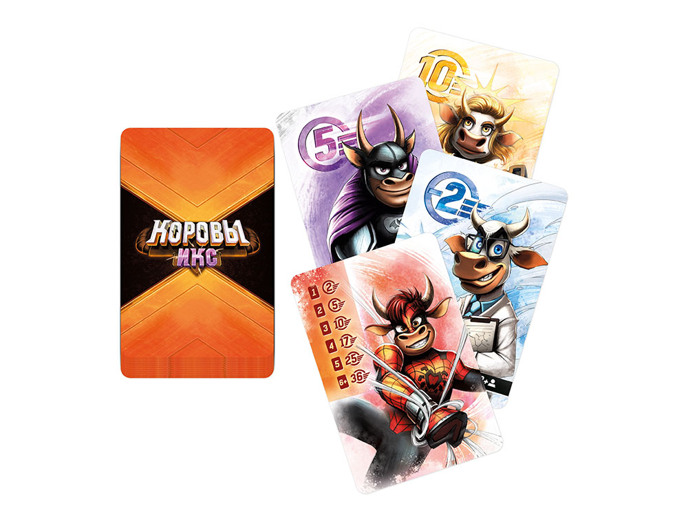 В состав настольной игры Коровы ИКС входят: 112 карточек, блокнот, правила игры.
