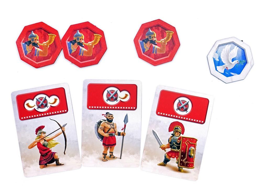 Игра длится несколько раундов. В свой ход выберите одну из карточек. На них изображены различные персонажи, которые помогают вам получить ресурсы, необходимые для возведения вашего Чуда света, совершения научных открытий и даже сражений с вашими соседями.