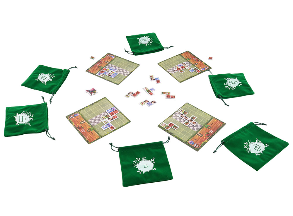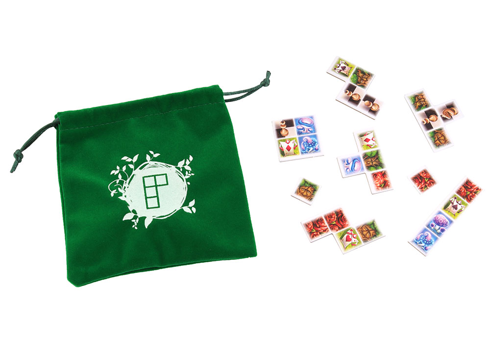 В состав игры входит: 4 планшета для игроков; 6 мешков; 95 тайлов; блокнот для подсчёта очков; правила игры