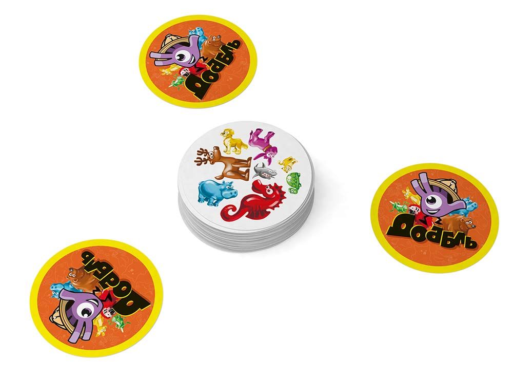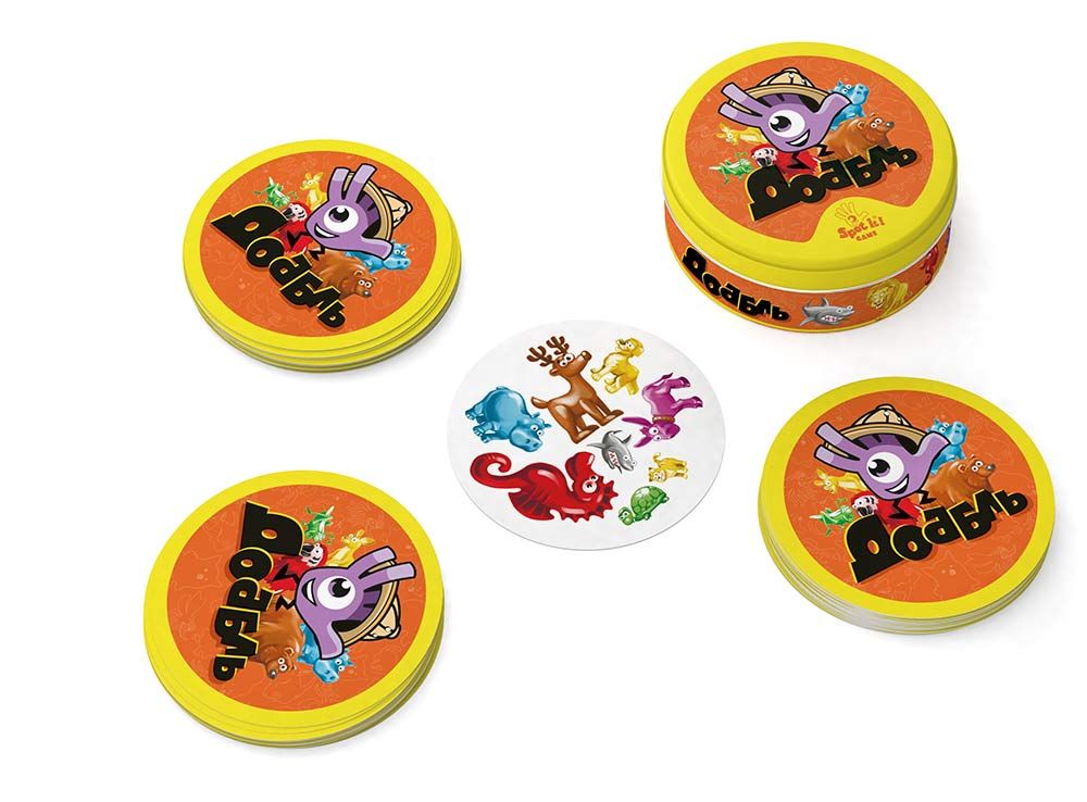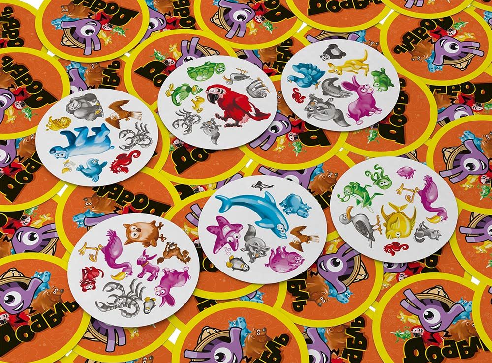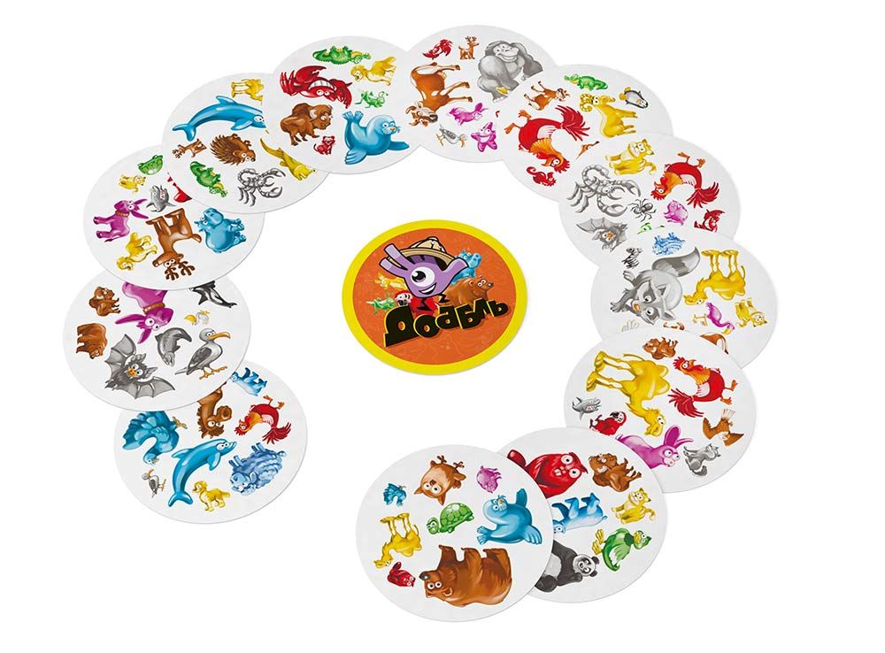 В основе всех разновидностей игры Доббль лежит один и тот же принцип: как можно быстрее найти совпадение на двух разных карточках и громко и чётко назвать его вслух. Если вам кажется, что одинаковой картинки нет, то просто ещё раз внимательно сравните карточки. Вы обязательно увидите два одинаковых изображения. Они могут отличаться размером, но точно совпадают цветом и видом животного.
