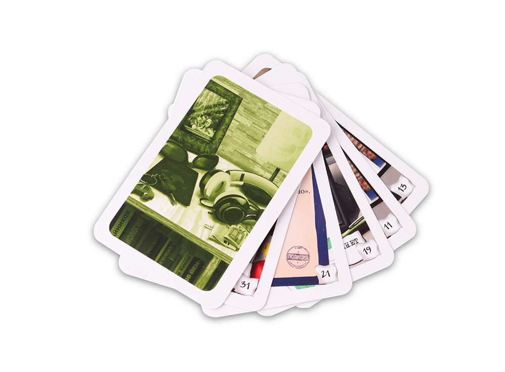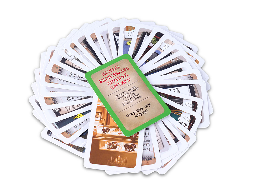 В состав настольной игры Элементарно! Пропавший без вести входят 37 карт и правила игры.