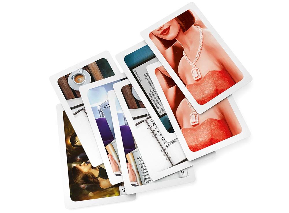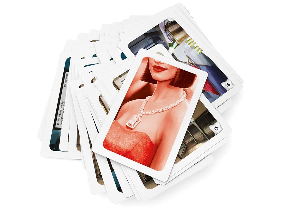 В состав настольной игры Элементарно! Колье «Фрида» входят 37 карт и правила игры.