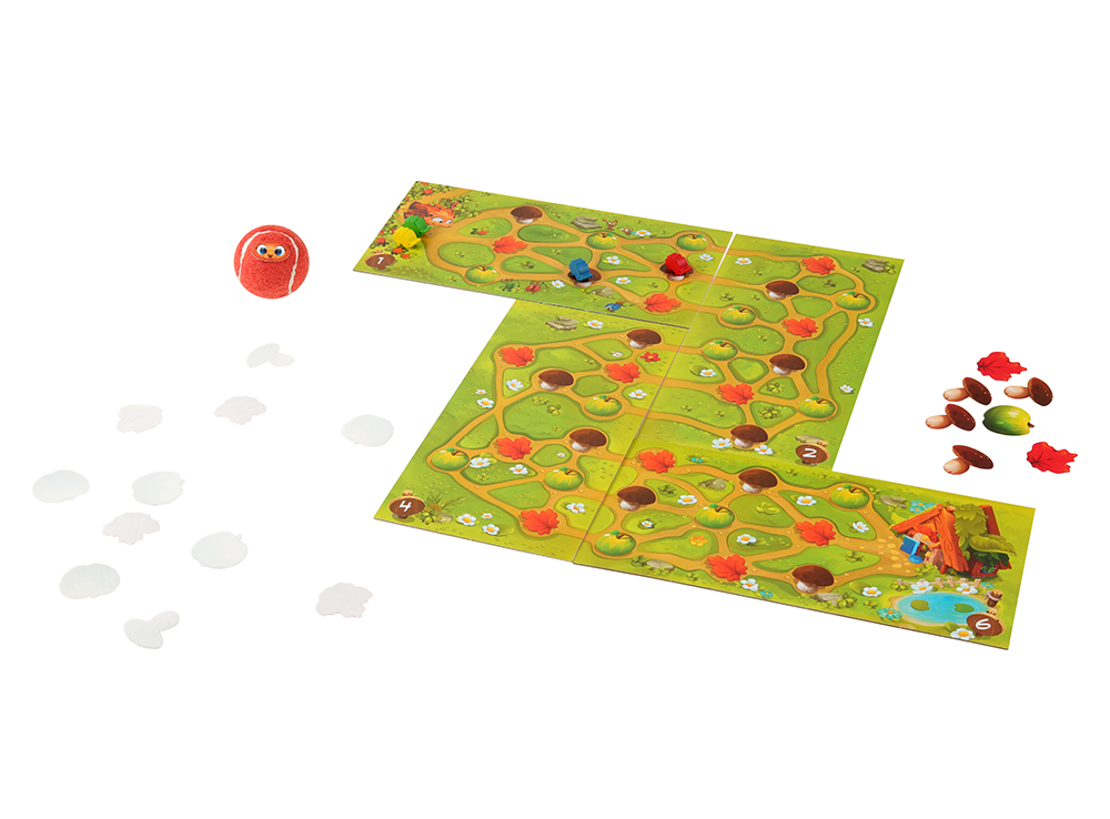 Соревнуйтесь с друзьями в ежиной перекати-гонке: бросайте мохнатый мячик на жетоны-липучки и собирайте яблочки, листочки и грибочки, чтобы продвинуться по лесной тропинке к домику ежа.