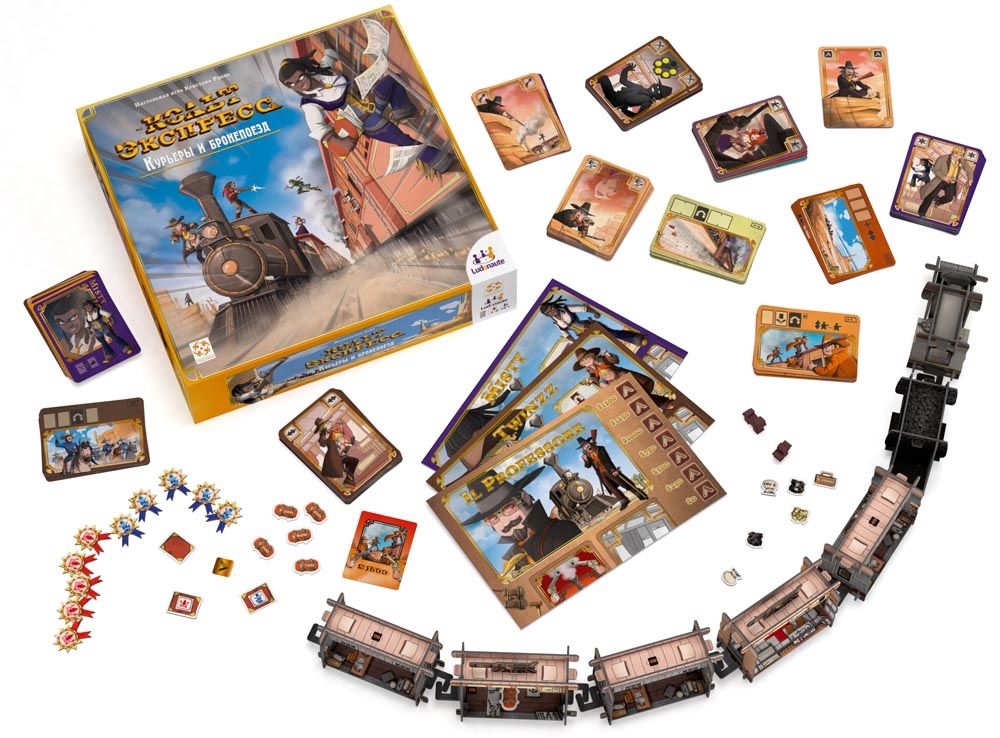 «Кольт Экспресс: Курьеры и бронепоезд» ― третье дополнение к настольной игре «Кольт Экспресс». В этом дополнении вам предстоит разделиться на две команды, каждая из которых будет охотиться за своим секретным документом, перемещаясь между двумя поездами. Главное ― оказаться в конце миссии в нужном поезде…