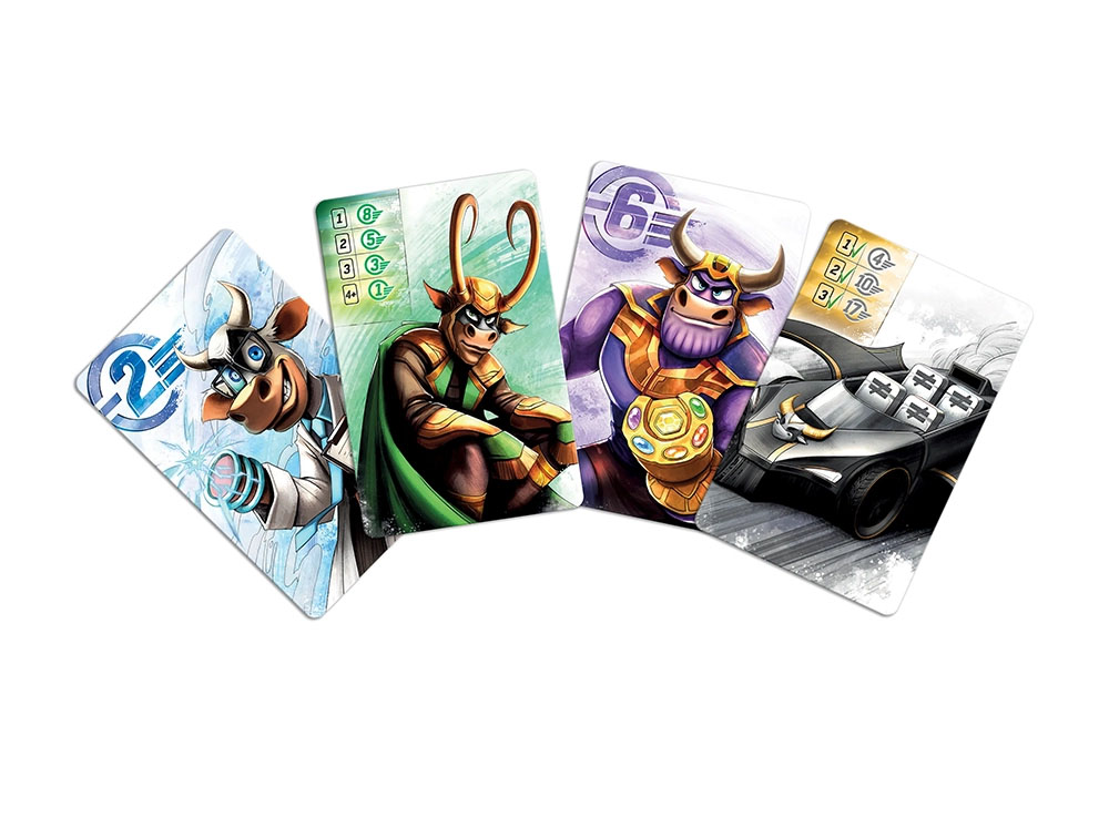 В состав настольной игры Коровы ИКС входят: 112 карточек, блокнот, правила игры.