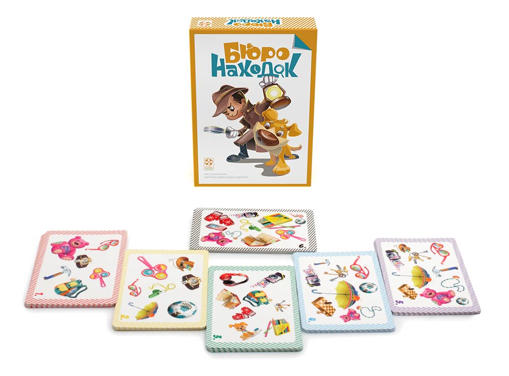 Кто-то что-то потерял? Не беда, ведь есть Бюро находок! В этой игре вам предстоит быть очень внимательным и действовать быстро: запоминайте картинки и скорее вычисляйте появившийся на обороте карты предмет. А благодаря разным уровням сложности Бюро находок заинтересует как детей, так и взрослых.