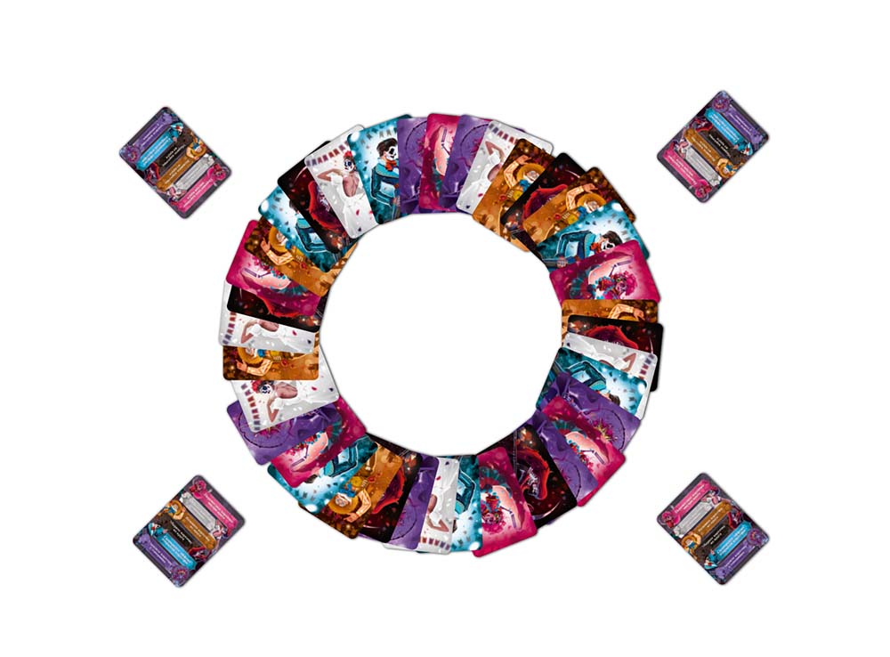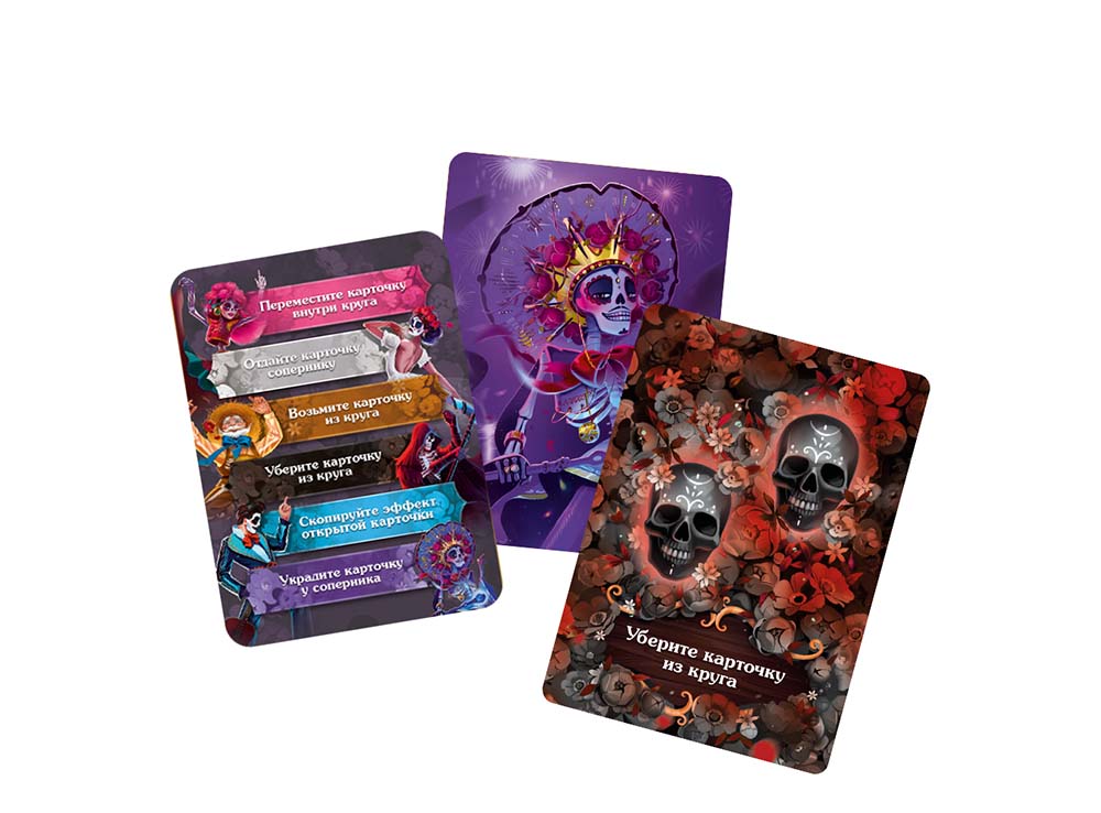 Мексиканский праздник День мёртвых — это единственный праздник в году, когда приподнимается завеса между миром живых и миром мёртвых. На этом карнавале рады всем и каждому: берите соседа за руку и пускайтесь в пляс! Координируйте движения танцоров, открывая выложенные в круг карточки и применяя их эффекты. Создавайте цепные реакции, перемещая карточки или же совсем убирая их из круга, чтобы забрать себе ещё больше карточек: одни танцоры приносят удачу, в то время как другие притягивают невезение!