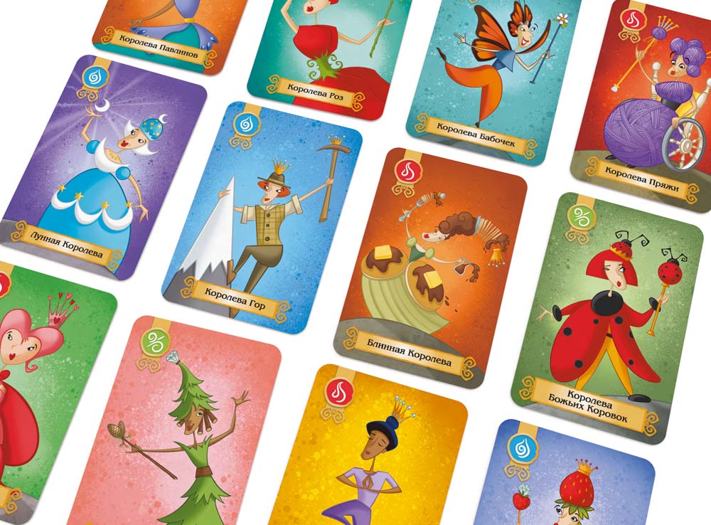 Королевы отправляются в путешествие, но по дороге через зачарованный лес они слышат крики о помощи. Короли попали в беду! Спасти их могут только королевы. Но для этого им не обойтись без волшебных помощников. И каждой королеве подойдёт только определённый тип помощника. Жители леса, книги чар, драконы и странствующие рыцари тоже не останутся в стороне. Первый игрок, спасший необходимое количество королей, станет победителем!