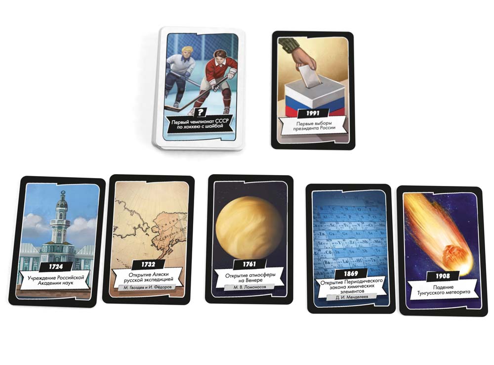 Что было открыто сначала — таблица Менделеева или Московский зоопарк? А Государственный банк в России, наверное, учредили до появления бумажных денег... или нет? В игре «Таймлайн. История России» вы будете задавать себе аналогичные вопросы каждый раз, когда попытаетесь сыграть одну из своих карточек. У вас лишь одна цель: первым верно разместить свои карточки на оси времени.