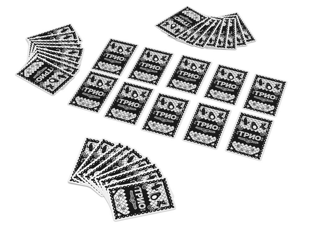 В состав настольной игры Трио входят: 36 карточек, правила игры.