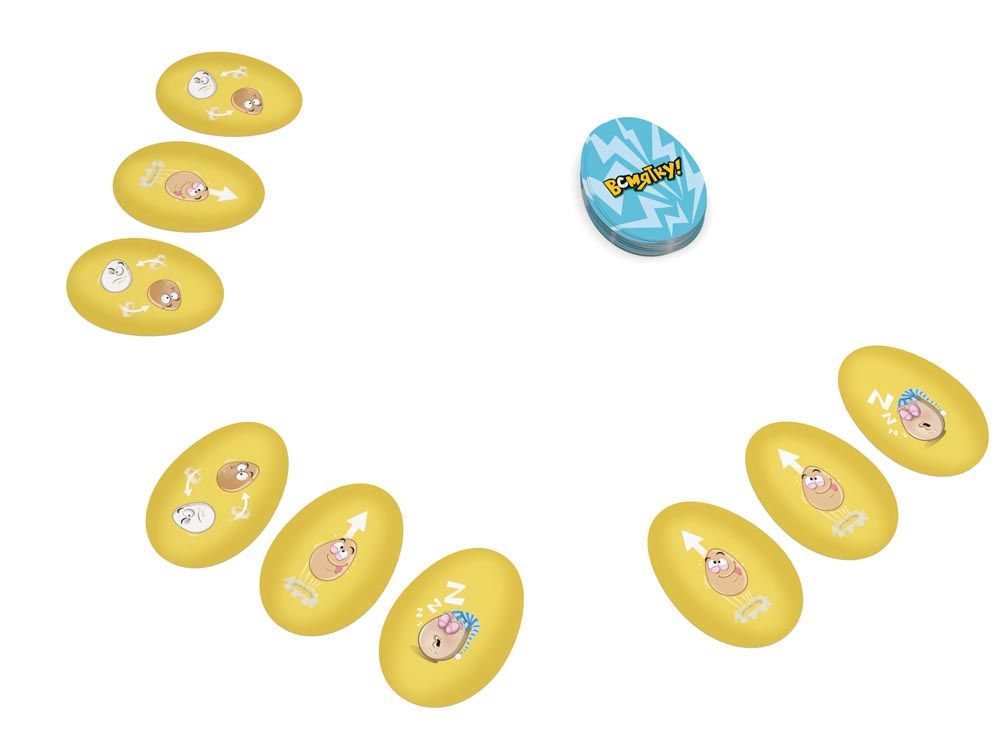 В этой веселой и динамичной игре игроки выступают в роли опытных фермеров-птицеводов, и им предстоит весьма оперативно избавляться от испорченных яиц в своих лотках. Делать это можно несколькими способами: например подбросить такой "сюрприз" соседу, или поменять яйца местами, а можно и вовсе усыпить карточку с яйцом (перевернуть её картинкой вниз).