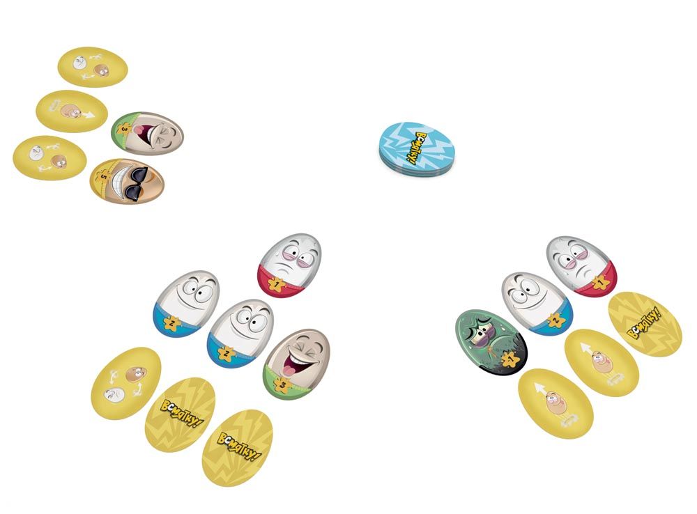В состав настольной игры Всмятку! входят: 73 карты: 54 карты-яйца, 18 карт действий, 1 карта наседки, правила игры.
