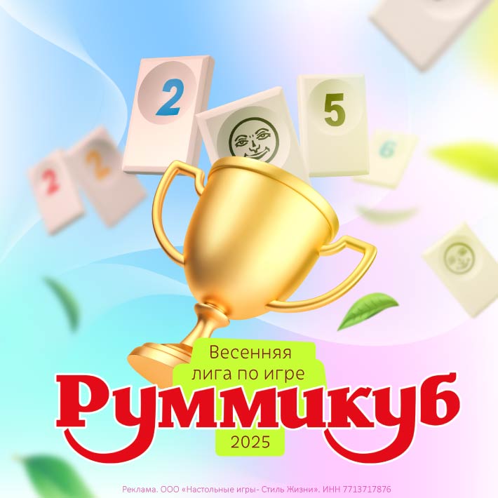 В апреле-июне 2025 года пройдет традиционная Весенняя лига по игре Руммикуб на площадке сайта rummikub.com/play-online. Присоединяйтесь и примите участие в борьбе за главный приз - сертификат на покупку настольных игр издательства Стиль Жизни на сумму 5000 руб.!